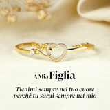 Celebra i legami più preziosi con il nostro elegante bracciale cuore-infinito "Sempre nel mio cuore". Questo gioiello rappresenta un messaggio profondo di amore eterno, unendo il simbolo dell’infinito con un cuore delicato per racchiudere tutto ciò che ami in un solo gesto.